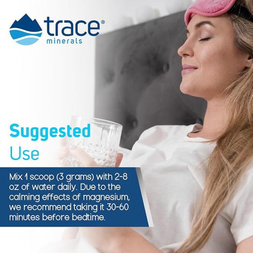 پودر منیزیم گلیسینات تریس مینرالز Trace Minerals Magnesium Glycinate خوشمزه و دارای طعم طبیعی است. 1 پیمانه معادل 3 گرم را با 2 تا 8 اونس آب مخلوط کنید و 30 تا 60 دقیقه قبل از خواب استفاده کنید.