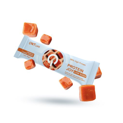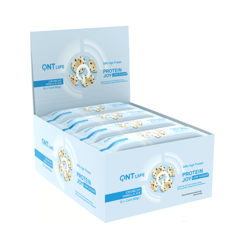 پروتئین بار جدید Protein Joy Bar با نام تجاری QNT حاوی حداکثر 38 درصد پروتئین با کیفیت (ایزوله وی و پروتئین سویا) و تنها 2.2 گرم قند است. بافت ترد آن به لطف قسمت ویفری که در لایه نازکی از شکلات رژیمی پوشانده شده است، لذتی واقعی دارد. Protein Joy با قابلیت هضم بالا یک میان وعده ایده آل برای سیر کردن قبل از تلاش یا رفع گرسنگی است. همچنین می توان آن را بعد از فعالیت بدنی برای ریکاوری ماهیچه های خود در حین فعالیت بدنی شدید و جایگزینی مخلوط پودر در حین تفریح مصرف کرد.