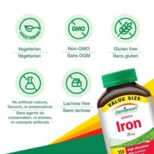 مزایای کپسول آهن جمیسون 28 میلی گرم 150 عدد Jamieson Gentle Iron