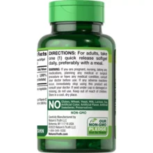 خلوص و کیفیت: Nature’s Truth به استفاده از مواد با کیفیت بالا و آزمایش شده برای خلوص و قدرت معروف است. این محصول فاقد گلوتن، گندم، مخمر، شیر، لاکتوز، طعمدهنده و شیرینکنندههای مصنوعی است و غیر GMO میباشد.