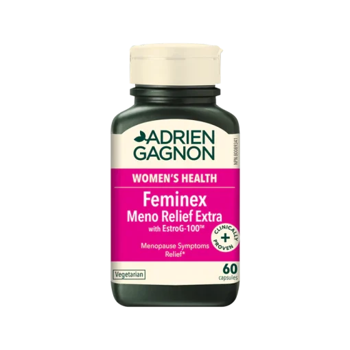 تسکین دهنده علائم یائسگی ادرین گگنون Adrien Gagnon Feminex Meno Relief Extra یک مسکن عالی و بدون ایزوفلاون اثبات شده بالینی است که به تسکین علائم یائسگی کمک می کند. این مکمل گیاهی برای زنان با علائم شدیدتر که نیاز به تسکین بیشتری دارند ساخته شده است. Feminex Meno Relief Extra می تواند به تسکین تعدادی از علائم مربوط به یائسگی مانند گرگرفتگی و تعریق شبانه، بی خوابی، عصبی بودن، سرگیجه و خستگی کمک کند.