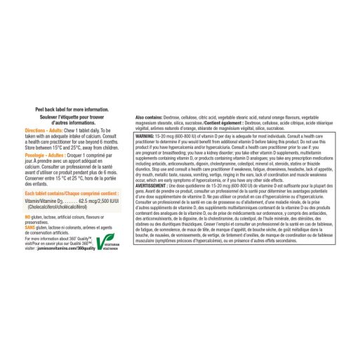 ویتامین د۳ ۲۵۰۰ واحد جمیسون به فرم قرص های جویدنی با طعم فوق العاده، 2500 واحد بین المللی ویتامین D3 خالص و طبیعی را برای جلوگیری از کمبود ویتامین دی ارائه می دهند. این مکمل جمیسون قدرت اضافی عالی برای افزایش مصرف ویتامین D با دوز قدرت بالاتر در یک وعده راحت است و به جلوگیری از کمبود ویتامین D کمک می کند.
