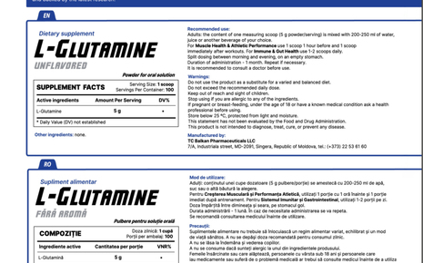 ال گلوتامین بالکان فارما یک مکمل غذایی به شکل پودر بر پایه ال گلوتامین است که به دلیل کیفیت بالا و اثربخشی اثبات شده مشهور است. مکمل ال گلوتامین از ریکاوری عضلات پشتیبانی و به بهبود سیستم ایمنی بدن کمک می کند.