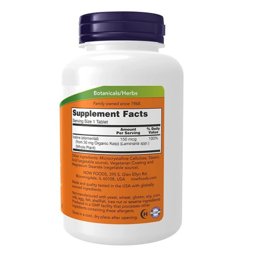 کلپ ناو NOW Kelp منبع عالی یدی است که به شکل قرص های مناسب تولید شده است. این محصول ساخت ایالات متحده است. کلپ NOW حاوی 100 درصد نیاز روزانه به ید است. مصرف این مکمل سلامت غده تیروئید را تضمین می کند، به تولید طبیعی هورمون های تیروئید و حفظ سطح پایدار متابولیسم پایه کمک می کند و برای تمامی افرادی که فعالیت بدنی دارند مناسب است.