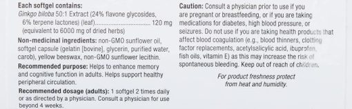 مکمل جینکو بیلوبا عاری از رنگ های مصنوعی، نگهدارنده ها یا شیرین کننده ها است. همچنین بدون لبنیات، نشاسته، شکر، گندم، گلوتن، مخمر، سویا، ذرت، تخم مرغ، ماهی، صدف، نمک، آجیل درختی یا GMO ها است.