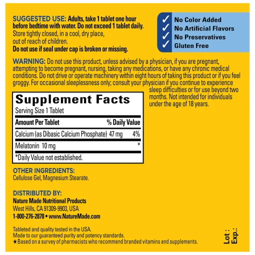 برای دستیابی به بهترین نتایج، یک قرص ملاتونین 10 میلیگرم را یک ساعت قبل از خواب با آب مصرف کنید. به هیچ عنوان بیشتر از یک قرص در روز مصرف نکنید. این مکمل مخصوص استفاده بزرگسالان است و برای افراد زیر 18 سال توصیه نمیشود.