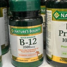 قرص ویتامین B12 نیچرز بونتی 2500 میکروگرم 75 عدد یک مکمل ضروری برای تأمین نیاز روزانه بدن به ویتامین B12 است. این قرصها به صورت کوئیک دیزالو (Quick Dissolve) طراحی شدهاند که به سرعت زیر زبان حل شده و جذب میشوند. طعم طبیعی گیلاس این محصول مصرف آن را لذتبخشتر کرده و گزینهای مناسب برای افرادی است که به دنبال دریافت سریع و مؤثر این ویتامین هستند. ویتامین B12 نقش مهمی در حفظ سلامت عمومی بدن دارد و به تقویت انرژی، بهبود عملکرد سیستم عصبی، کمک به ساخت گلبولهای قرمز و حفظ سلامت قلب کمک میکند.
