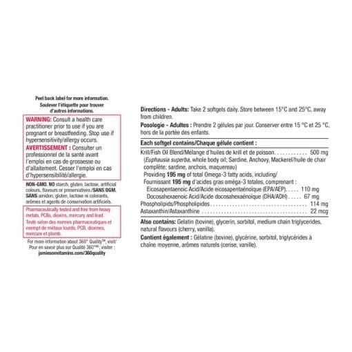 امگا کریل پلاس جمیسون 60 عددی با 500 میلی گرم مخلوط روغن کریل ترکیبی عالی از کریل قطب جنوب 100 درصد خالص و روغن ماهی ممتاز برای کمک به ارتقای سلامت قلب است، همه این مزایا بدون طعم، بو و مزه ماهی است.