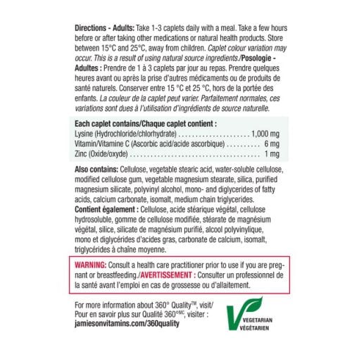 لیزین، زینک و ویتامین سی جمیسون 60 عددی Jamieson Lysine, Zinc & Vitamin C