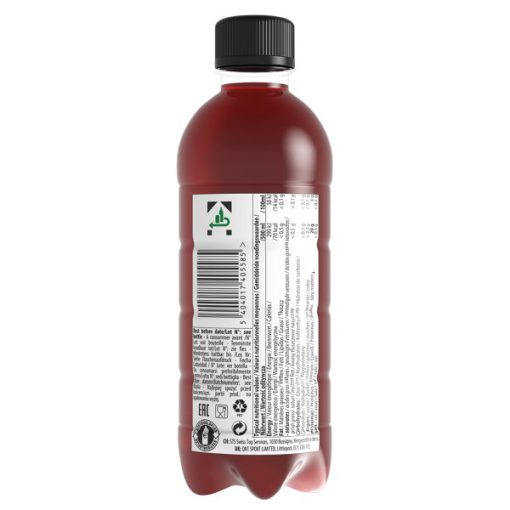 آب، پروتئین وی ایزوله (شیر)، اسیدی کننده: E330، سیترات سدیم: E331، شیرین کننده: E955، سوربات پتاسیم: E202، رنگ: E150d، E122، E102، E133، طعم، بنزوات سدیم: E211.