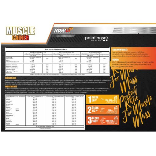 ماسل گینر ناو آپ نوتریشن NowUP Nutrition Muscle Gainer مخلوطی است که با استفاده از کربوهیدرات ها و پروتئین های با کیفیت بالا با ارزش بیولوژیکی بالا برای برآوردن نیازهای کربوهیدرات و پروتئین مورد نیاز برای رشد و نگهداری عضله با پشتیبانی کالری تهیه می شود. برای رسیدن به رشد عضلانی، باید به اندازه کافی غذا بخورید. مصرف کالری کافی برای کسانی که متابولیسم بالایی دارند دشوار است. Nowup Muscle Gainer با حمایت کالری ایده آل به رشد عضلانی مورد نظر کمک می کند و به شما امکان می دهد با محافظت از عضلات در حال رشد خود به عملکرد عضلانی بالایی برسید. همزمان؛ با داشتن کربوهیدرات ایده آل، پروتئین بالا و محتوای چربی کم، گزینه ای ایده آل و سالم برای کسانی است که می خواهند وزن خود را کنترل کنند.