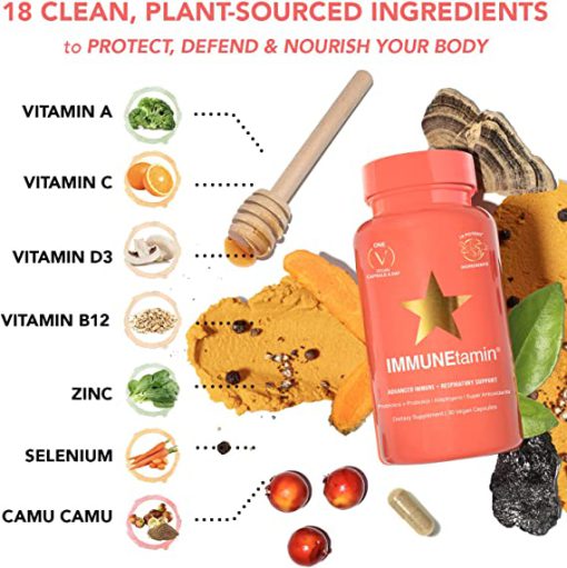 ویتامین آ، ویتامین سی، ویتامین دی 3، ویتامین ب 12، زینک، سلنیوم، اکیناسه (سنجد)، موم زنبور عسل، لاکتوباسیلوس اسیدوفیلوس، زردچوبه (اینولین)، قارچ (دم بوقلمونی)، مهر طلایی، آشواگاندا، گون، کامو کامو، سیر