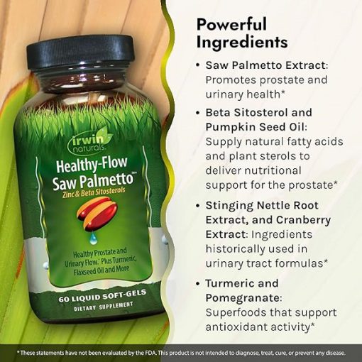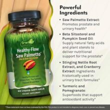 عصاره نخل اره اروین 60 عدد Irwin Naturals Healthy-Flow Saw Palmetto حاوی قوی ترین مواد طبیعی برای حمایت از سلامت پروستات و دستگاه ادراری است. این محصول علاوه بر عصاره نخل اره ای حاوی مواد زیر می باشد:
