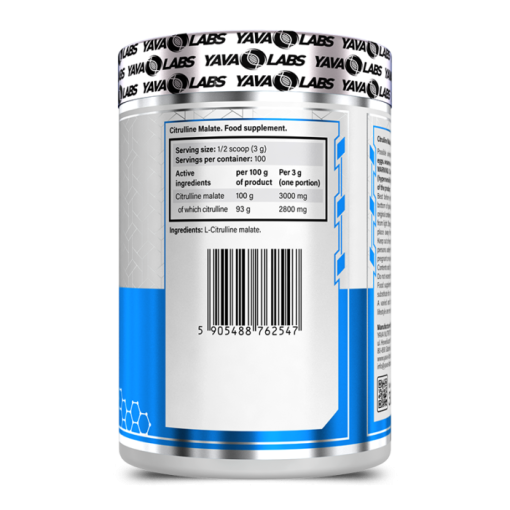 دوز بالا: هر وعده از سیترولین مالات یاوا لبز حاوی 3000 میلیگرم سیترولین مالات با 2800 میلیگرم سیترولین خالص است که باعث افزایش کارایی این مکمل و بهبود نتایج تمرینی میشود.