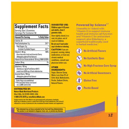 پاستیل ایمنی و سوپر غذا نیچرمید تقویت کننده سیستم ایمنی برای کودکان و بزرگسالان با ترکیب 3 در 1 با ویتامین D و ویتامین C برای حمایت از سیستم ایمنی به علاوه سنجد است. الدربری به طور سنتی در طب گیاهی استفاده می شود.