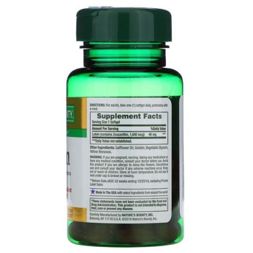 لوتئین نیچرز بونتی Nature’s Bounty Lutein از سلامت چشم برای بزرگسالان حمایت می کند. این یکی از فراوان ترین کاروتنوئیدها است که در میوه ها، سبزیجات و حتی گیاهانی مانند گل همیشه بهار یافت می شود. لوتئین همچنین دارای خواص آنتی اکسیدانی برای بزرگسالان است.