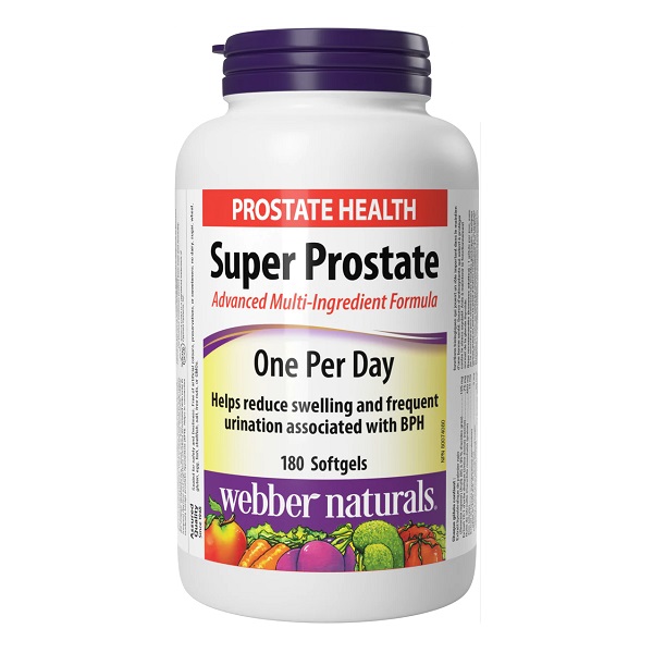 Super Prostate شرکت Webber Naturals دارای ویژگی های نخل اره و گزنه، دو گیاه دارویی است که به طور سنتی برای کمک به سلامت پروستات و کاهش علائم هیپرپلازی خوش خیم پروستات خفیف تا متوسط (BPH) استفاده می شود. این فرمول یک روزه همچنین حاوی روغن دانه کدو تنبل و مواد مغذی آنتی اکسیدانی از جمله سلنیوم، روی و لیکوپن است.