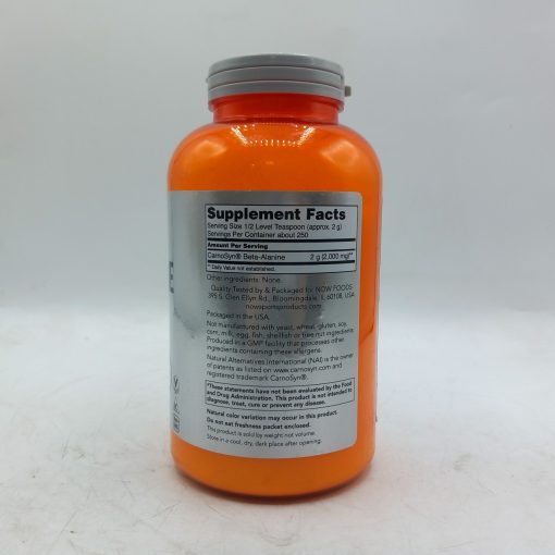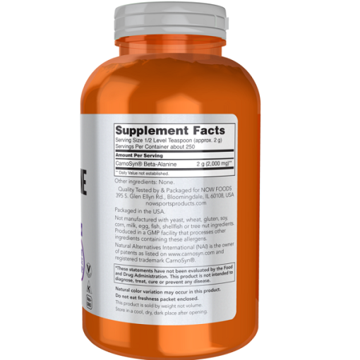 پودر بتا آلانین ناو 500 گرم NOW Beta-Alanine از استقامت عضلانی شما حمایت می کند. بتا آلانین یک اسید آمینه غیر ضروری است که توسط سلول های ماهیچه ای برای سنتز کارنوزین استفاده می شود. کمک به حفظ pH عضلانی بهینه توسط تحقیقات علمی پشتیبانی می شود که نشان می دهد مکمل CarnoSyn منجر به تاخیر در خستگی عضلانی و زمان ریکاوری سریع می شود و در نتیجه به شما در دستیابی به اهداف تمرینی قدرتی و استقامتی کمک می کند.
