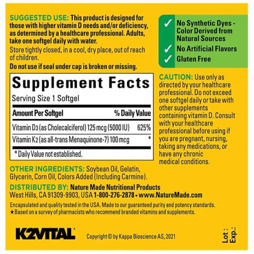 ویتامین د3 و کا2 نیچرمید 30 عددی Nature Made Vitamin D3 + K2 Softgels