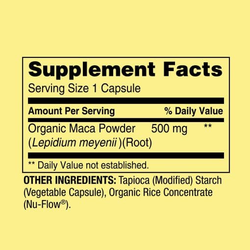 ماکا تغذیه کلی را تقویت می کند و عملکرد هورمونی مردانه و زنانه را پشتیبانی می کند. کپسول های ماکای ارگانیک بدون گلوتن فاقد رنگ مصنوعی، طعم دهنده، شیرین کننده، مواد نگهدارنده، عطر، بنزوات ها، رنگ های قطران زغال سنگ، MSG، BPA، یا فتالات هستند.