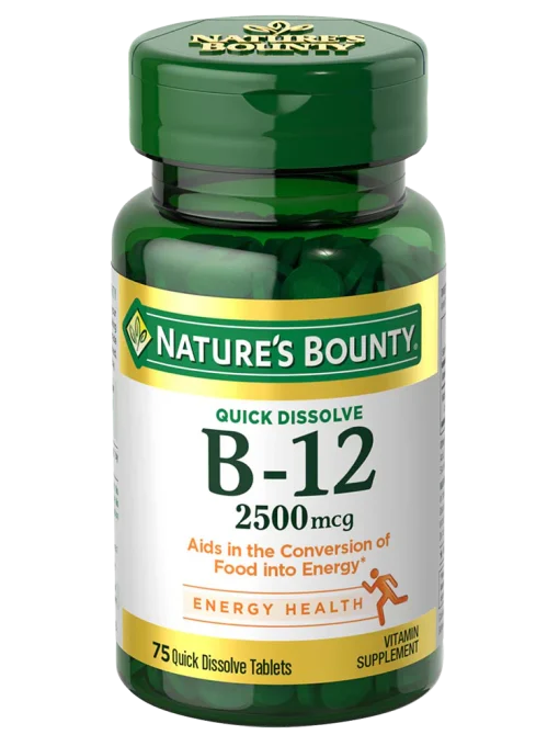 قرص ویتامین B12 نیچرز بونتی 2500 میکروگرم 75 عدد یک انتخاب مطمئن برای افرادی است که به دنبال تأمین نیاز روزانه خود به این ویتامین مهم هستند. فرمولاسیون سریعحلشونده (Quick Dissolve)، طعم خوشایند، کیفیت تضمینشده و ترکیب فاقد مواد مضر، همگی باعث شده این محصول به یکی از مکملهای محبوب برای حفظ انرژی و سلامت عمومی بدن تبدیل شود.
