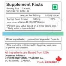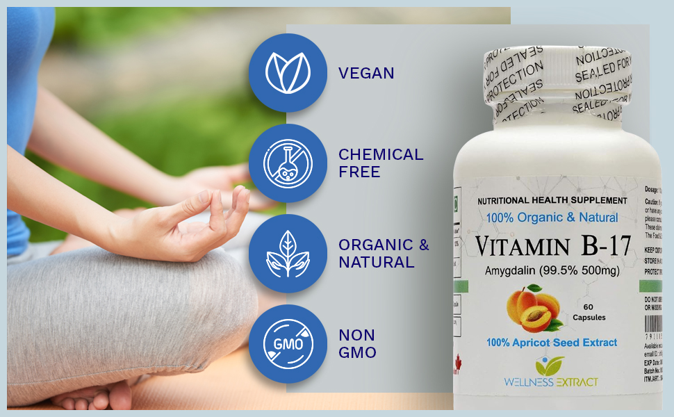 هر کپسول حاوی ۹۹.۵٪ ۵۰۰ میلیگرم ویتامین B17 خالص است که از هسته زردآلوی تلخ استخراج شده است.